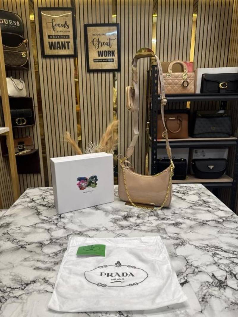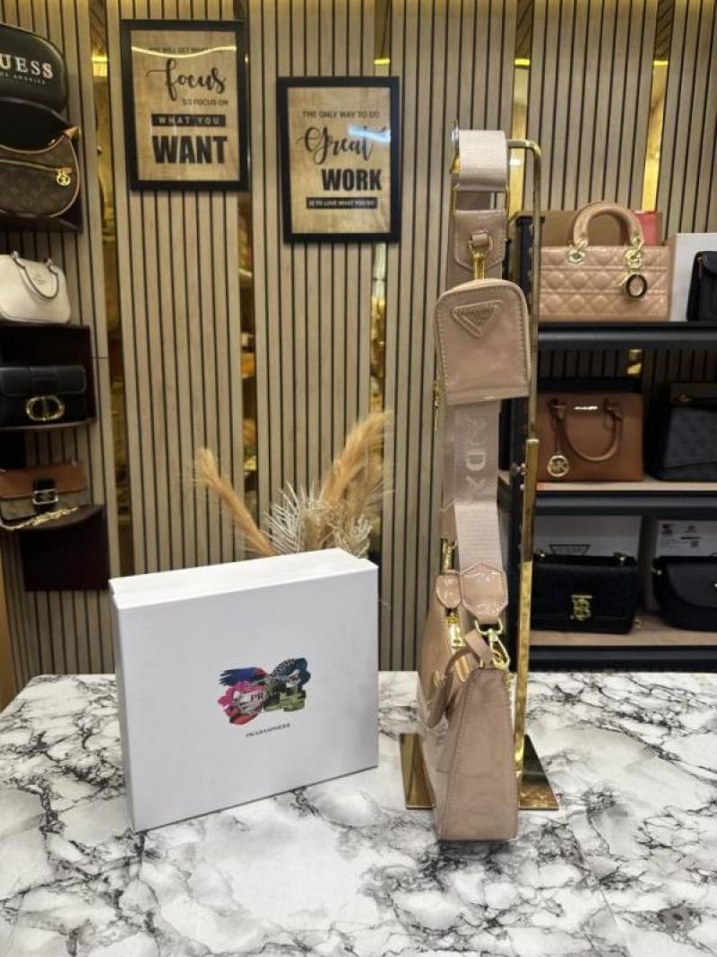 PRAD_A RE EDITION GLOSSY BAG WITH OG BOX DUST BAG CARD CREAM